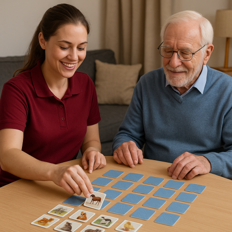 Individuelle Einzelbetreuung: Auf persönliche Bedürfnisse zugeschnittene Begleitung im häuslichen Umfeld, die Nähe und Sicherheit vermittelt.